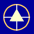 Inscritos en la circunferencia aparecen tres vértices de un triángulo equilátero. El primero al sudoeste. El segundo al sudeste. El tercero al norte, completando un triángulo amarillo claro que representa al Señor Buda, el Espíritu de la Paz y el Avatar de Síntesis.